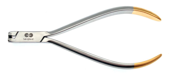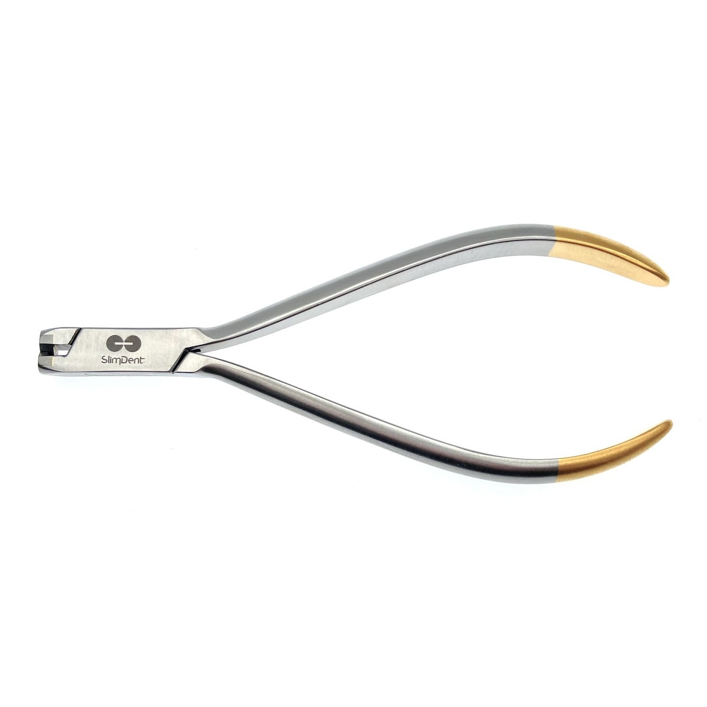 Alicates de Corte Distal de SlimDent fabricado en Alemania, diseñados para cortar arcos dentro de la boca del paciente.